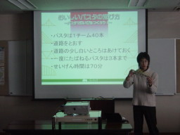 橋のかたちと強さのひみつを勉強した後は、限られたパスタでどれだけ強い橋をつくれるかを競うコンテスト。