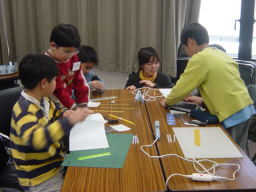 | コンテスト開始!!まずは設計から。 | サンプルの橋も貴重な参考資料。 子供って賢いね! |