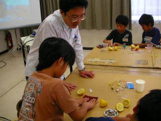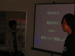 | 今回は田中未来と小嶋秀哉が先生でした。 電池はどうやって動いているのかな? |