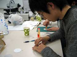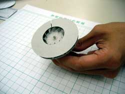 とりあえず、送風機を試作。 使う道具は、ハサミ・カッター・ノリ
