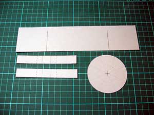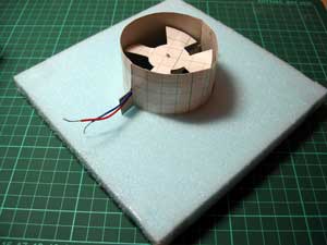 使う材料は、厚紙(切る場所等は印刷済)、スタイロフォーム、マブチモーター、電池ボックス、電池。