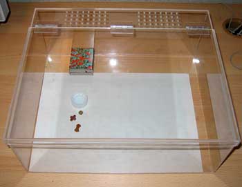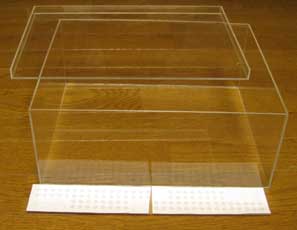 人の見てないところでコソコソしちゃいけません! って昔、習ったでしょ!!(怒) そーいうことで、全面透明アクリル張りにしてあげちゃいました。 下に敷いてあるのはA4の方眼紙です。結構、大きな家だと思いません??