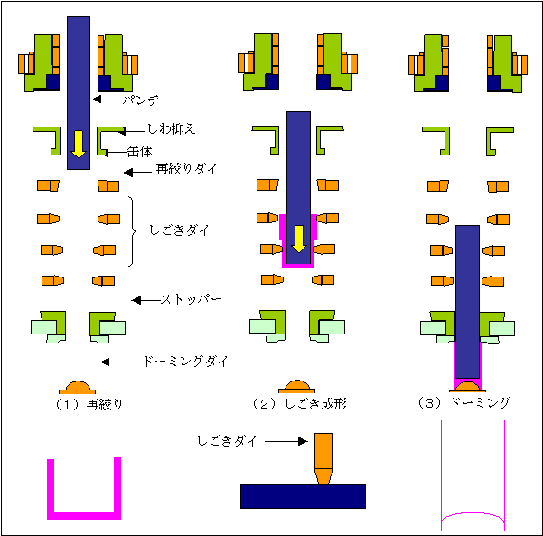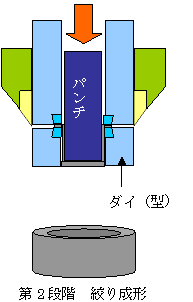 工程を絞り成形といいます。(図2)