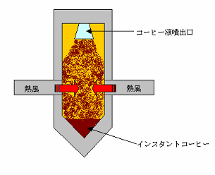 噴霧乾燥(スプレードライ)は、抽出したコーヒー液を霧吹きで噴射し、熱風を吹き