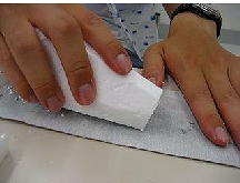 | @カッターで大まかに形をとります。 | Aやすりで形を滑らかに整えます。 | |||