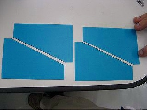 | 次に羽を作ります。材料には、クリアファイルに使われているプラスチックシートを使いました。 | |||