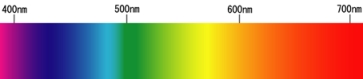 光の3原色と色の3原色の位置関係をスペクトル上で示すと、