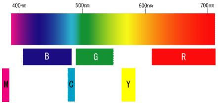 これは、RGB を印刷物の基本色素に使うと、2 層が重なった時点で全ての光が吸収されてしまい、黒になってしまうからである。
