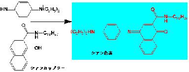 これがさらに、フィルムに塗布されているカップラー試薬と反応します。