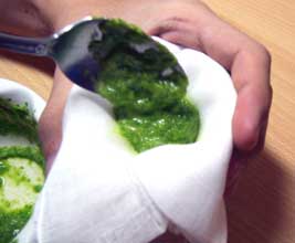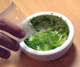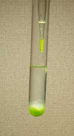 搾って出てきた液を冷やしたエタノールの中に入れます。