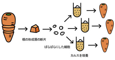 ニンジンの一つの細胞からカルスを経て植物体の組織培養に成功