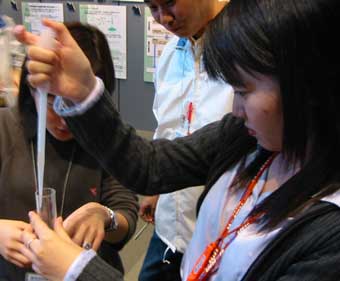 展示期間最後の週末には、お客さんにDNAを取り出す体験をしてもらいました。