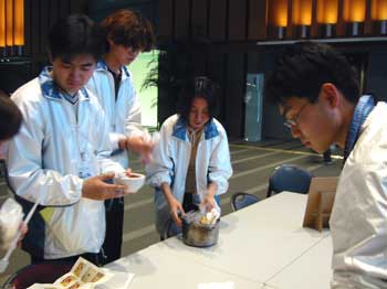 「DNAを見てみよう」イベントの風景です。 レバーは、細かくすりつぶします。