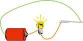 流れているので、電気がつきます。でも、途中にあるスイッチを切ると、電流が流れなくなって豆電球はつきません。