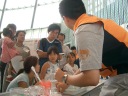 去る 2004 年 9 月 19 日(日)、20 日(月・敬老の日)に、日本科学未来館、秋のボランティアイベントの一つとして、 「聞く?効く!お薬」という名で「薬」をテーマにしたイベントを実施しました。具体的には、「ウイルスと細菌」、「毒」、 「薬」の 3 ブースに分かれ、それぞれのブースでパネルによる展示解説、実験・体験を行いました。