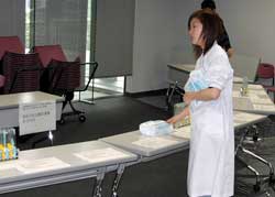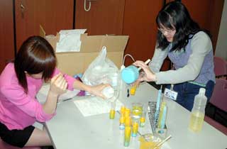 体験実験で使うブラックライトを用意しているようです。